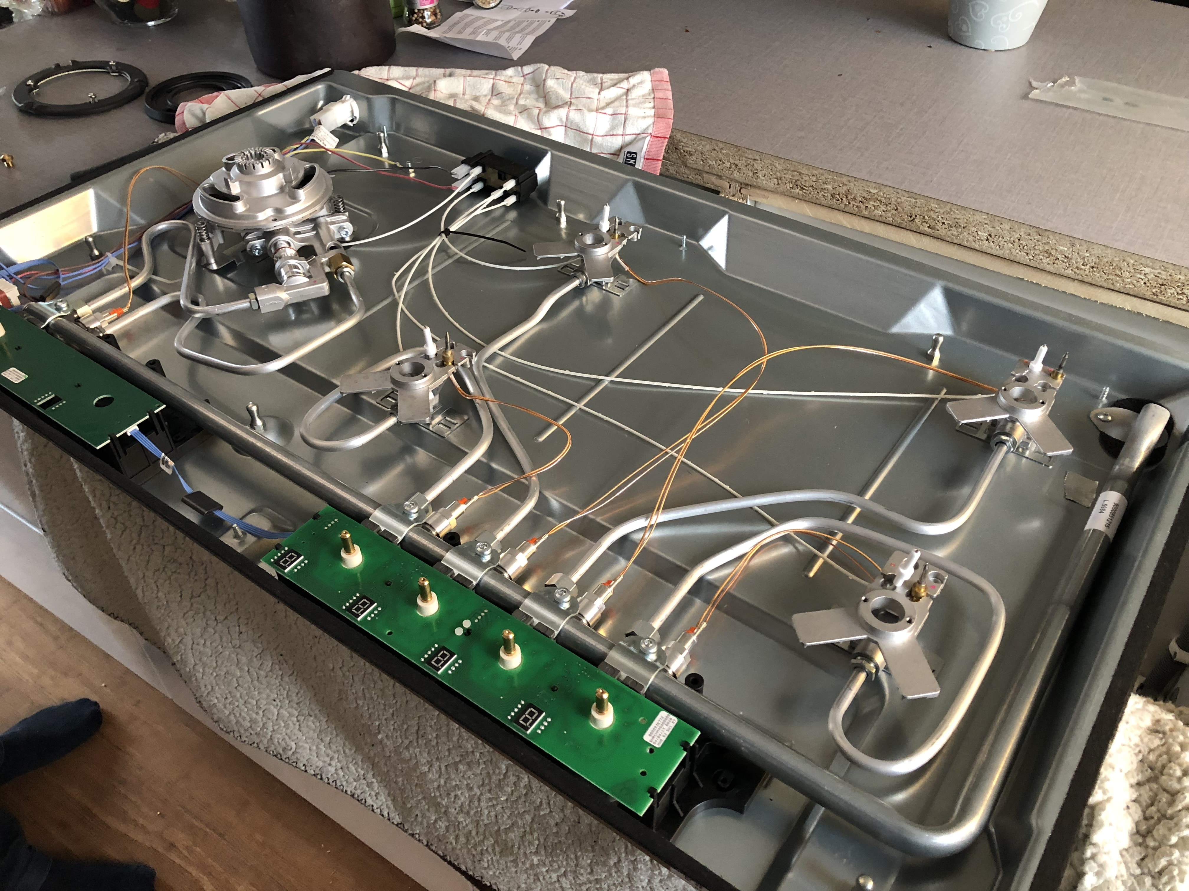 Det är inte så avancerat när man tittar på insidan. Munstyckena till den stora wok-brännaren måste justeras inuti hällen och likaså ska man vrida lite på en skruv vid manövervredet.