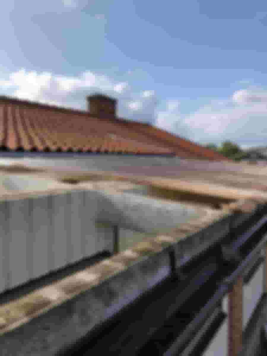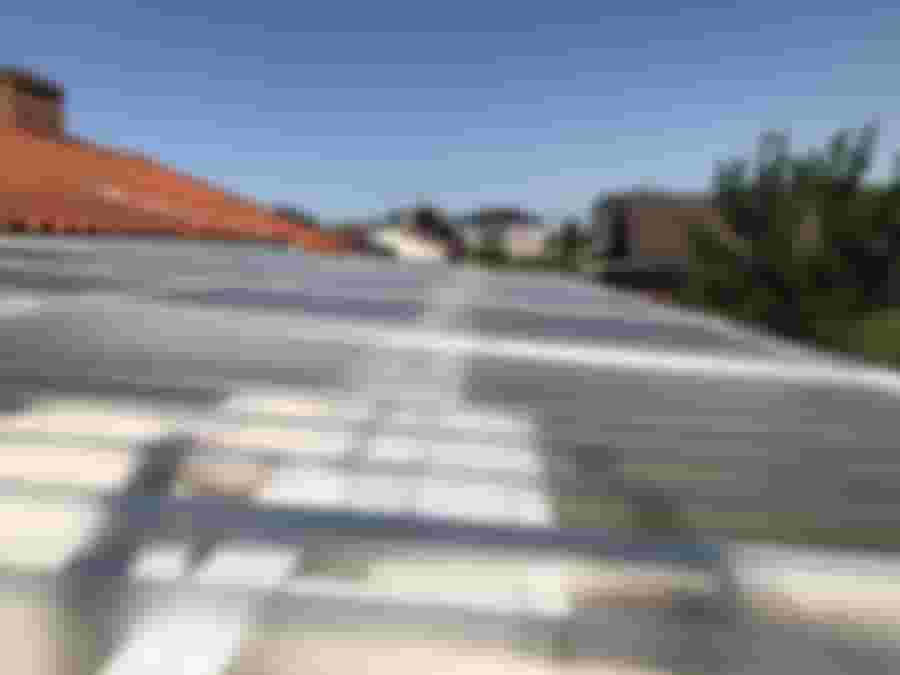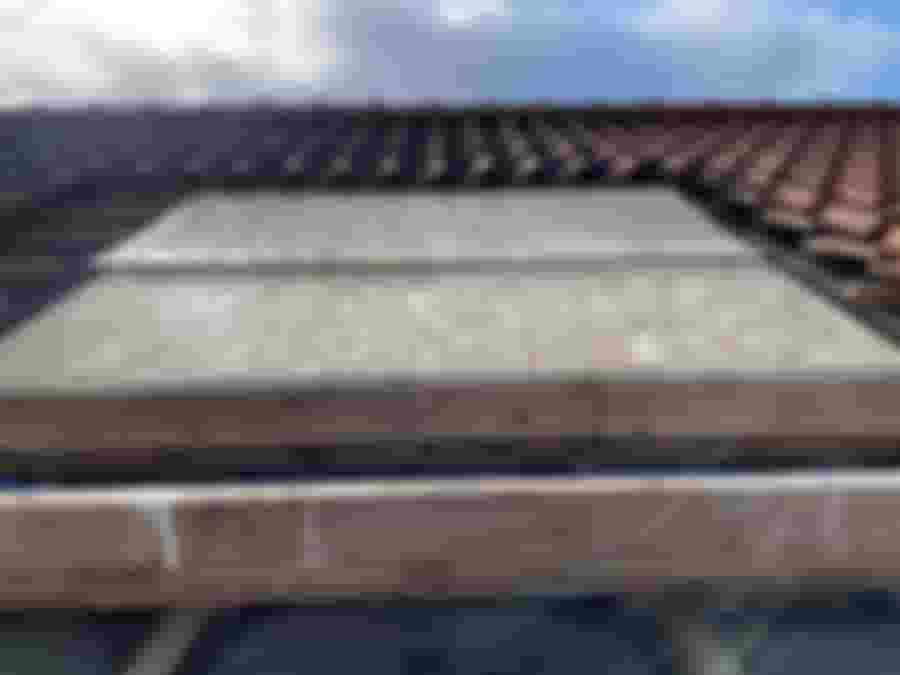 Taket är på plats, i det stora hela gör det sitt jobb, men marginalen i skarvarna är väldigt liten och en av dem har glidit lite, så ibland läcker det in vatten. Lite mjukfog har fått lösa problemet tills det blev dags att utveckla uterummet, vilket borde ske inom 5-10 år med nuvarande hastighet 😀