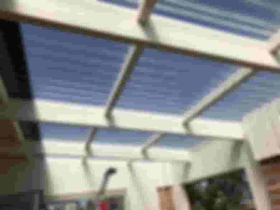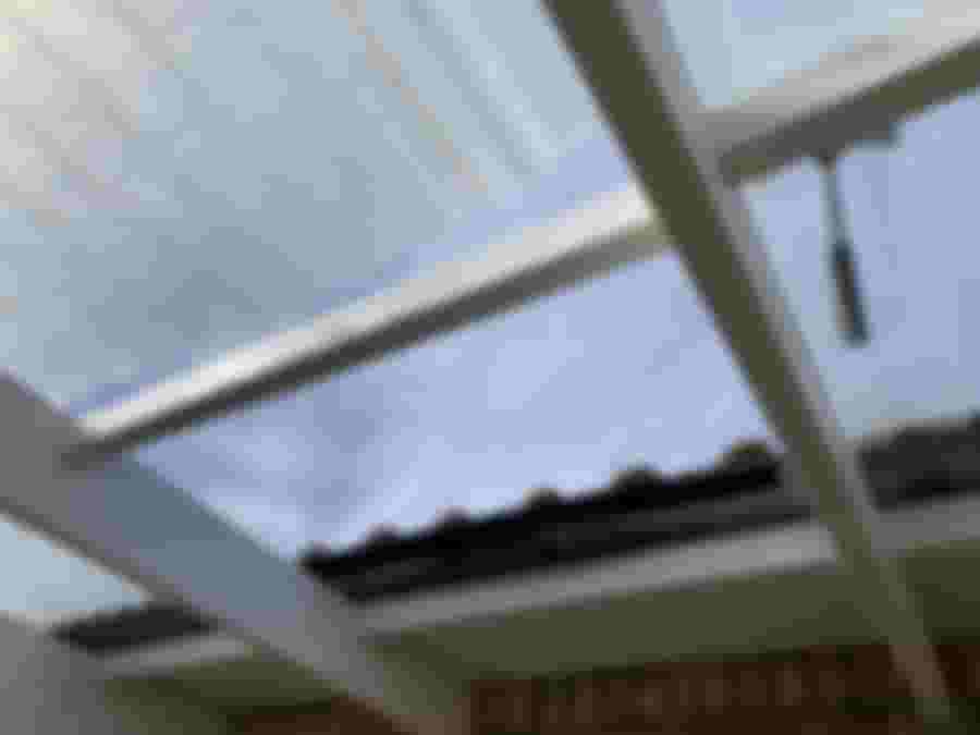 Det nya plasttaket var ett av de billigaste som jag kunde hitta. Jag ska inte säga att det märks, men märkningen i läggningsinstruktionerna var väldigt otydliga, jag skulle vilja säga felaktiga, vilket gjorde att vi la den första plattan upp-och-ner. Det gjorde att skarven blev fel och vi fick byta den första plattan – nu fylld av skruvhål på fel ställe!